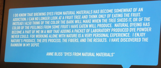 Carol is showing examples of yarn she dyed in a class using all natural dyes. Beautiful colors.